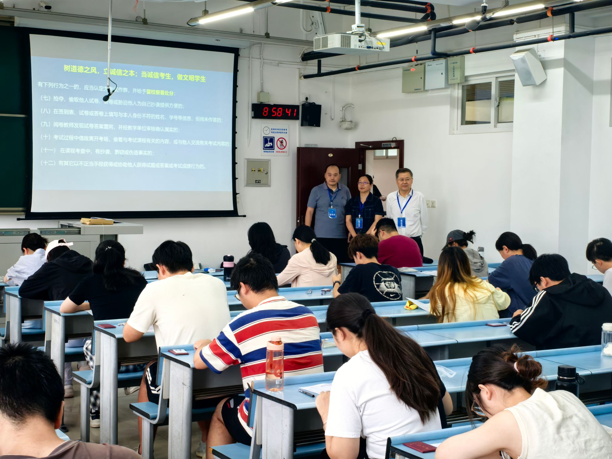巡查组重点检查了学院监考教师是否按时到岗、规范操作、认真履职,以及考试学生是否遵守考场纪律、专注答题。巡查结果显示,各考场秩序井然,监考教师均能认真负责地执行监考任务,学生也展现出专注投入的应考状态,整体考风严谨有序。