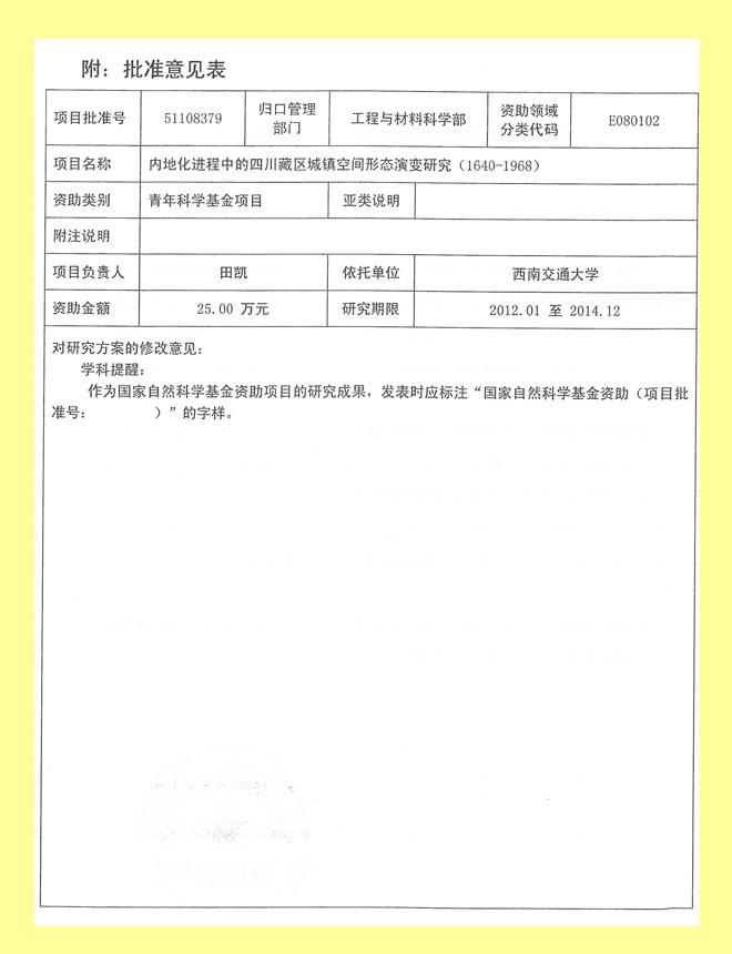 在2011年申报的国家自然科学基金项目中,77779193永利官网张蓉、田凯、黄瑞三位老师各获批准青年基金项目一项。目前,我院在研的国家自然科学基金项目已达8项,其中面上项目3项,青年基金项目5项,在全国建筑学科居前列位置。
