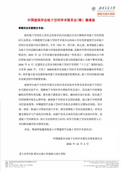 中国建筑学会地下空间学术委员会成立大会暨学术研讨会议程