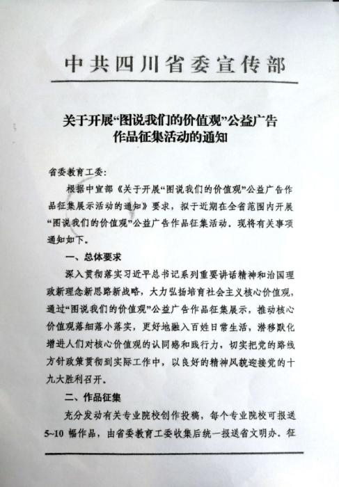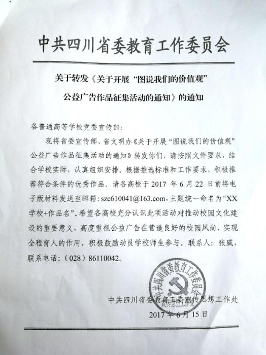 请按照文件要求结合学院专业特点根据推选标准和工作要求。积极推荐符合条件的优秀作品。请于2017年6月22日前将电子版材料发送至四川省委教育工委宣思处邮箱:szc610041@163.com。主题同意命名为“西南交通大学+作品名”