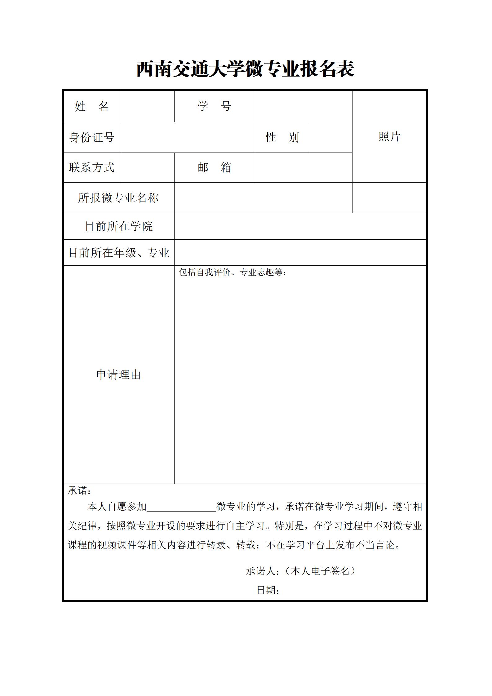 西南交通大学微专业报名表.docx