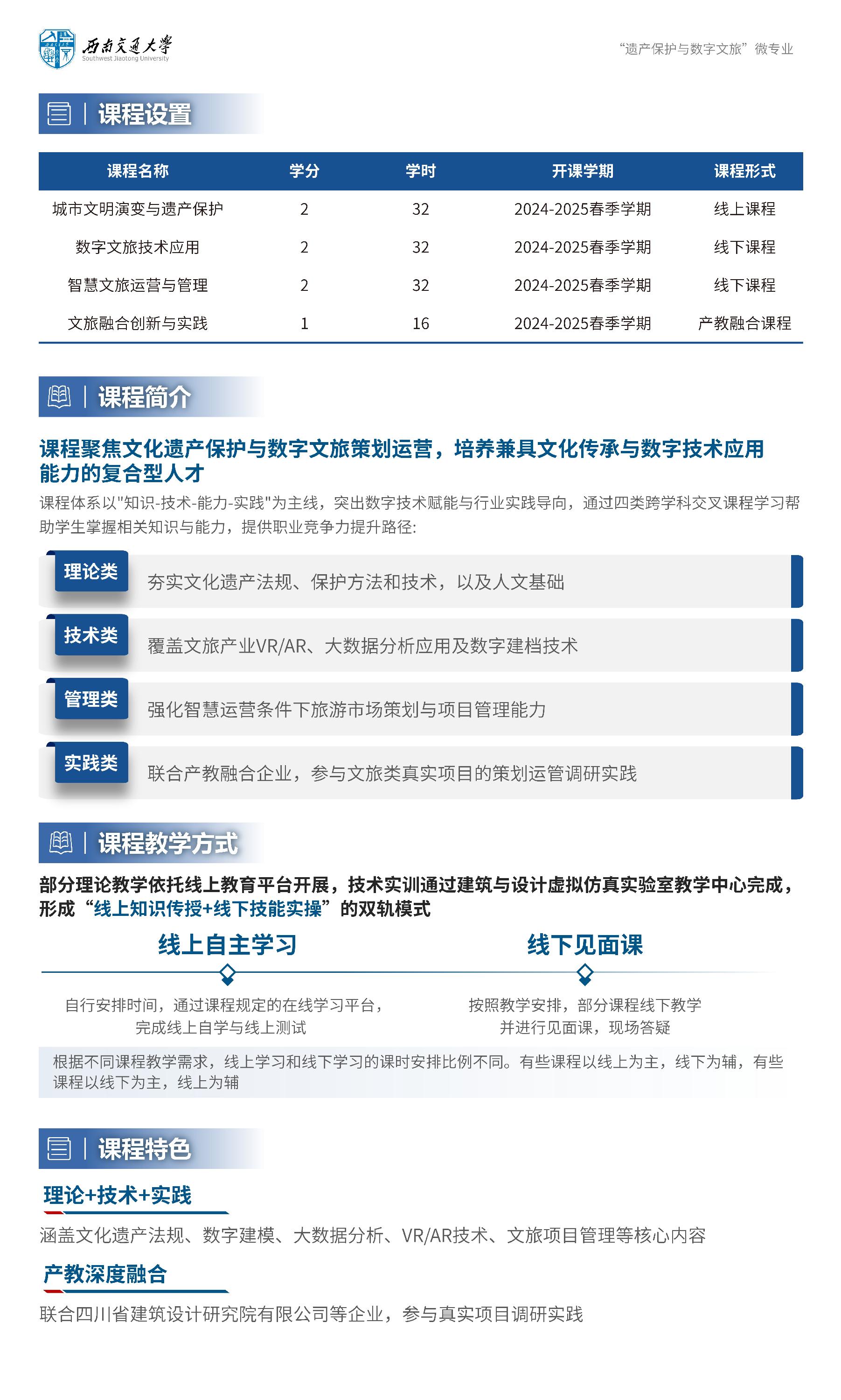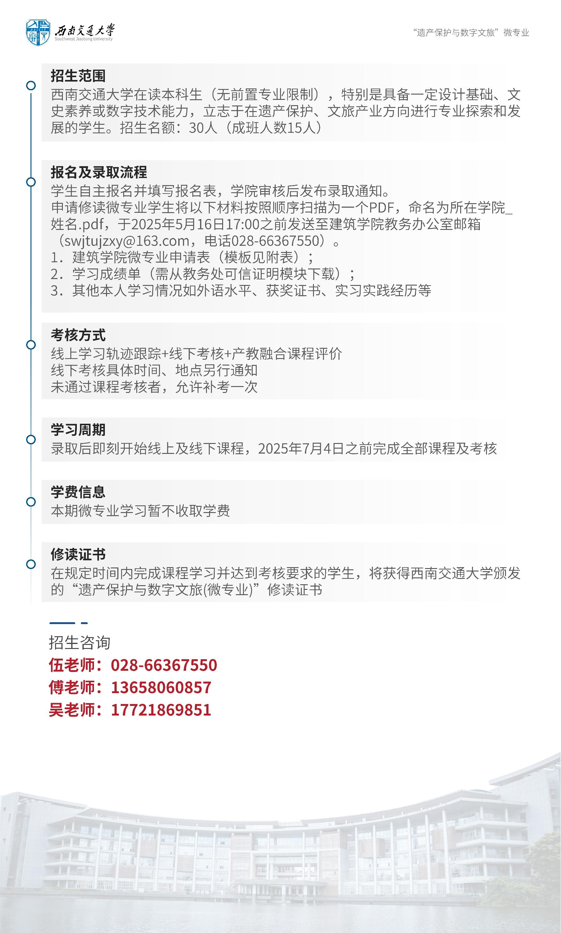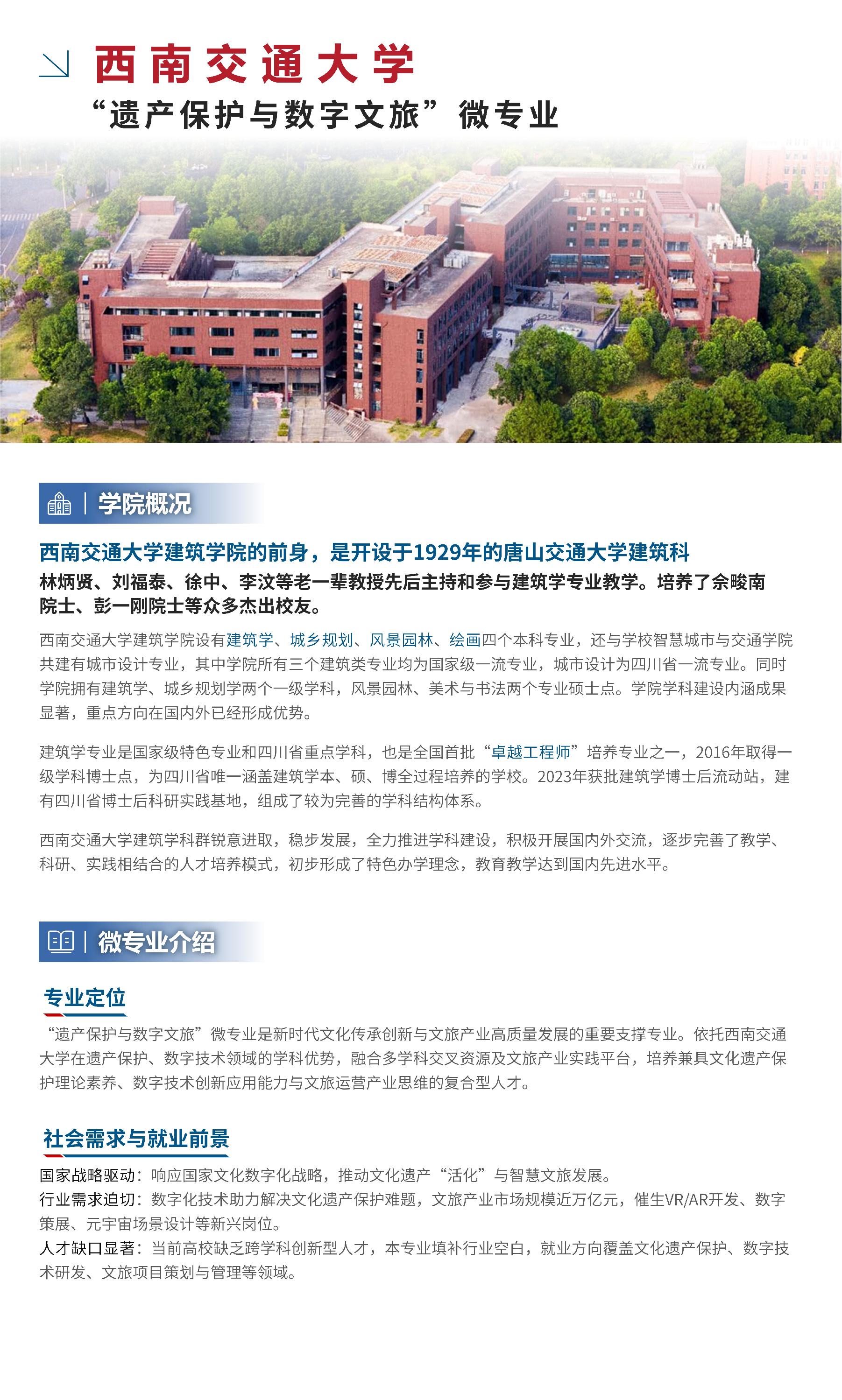 【招生简章】西南交通大学2024-2025学年春季学期“遗产保护与数字文旅”微专业招生简章