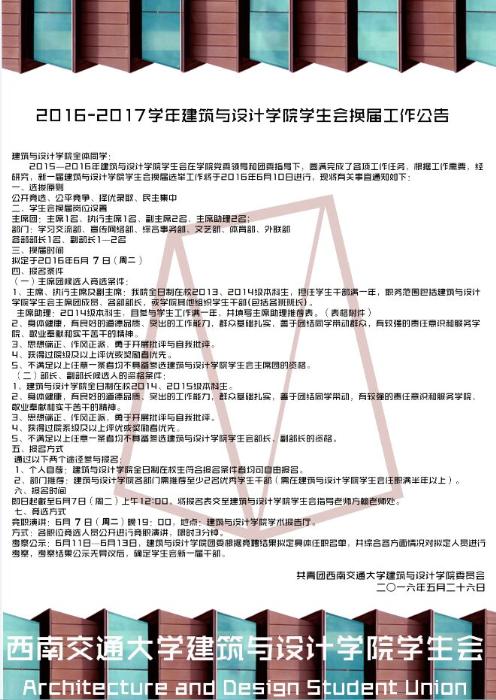 上一篇: 【毕业季】西南交通大学“朝心夕拾”2016届毕业生照片征集活动通告