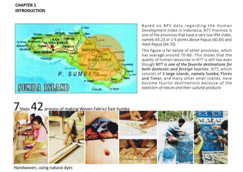 此外Erwin Ardianto Halim 也阐述了印尼东松巴梭织物在可持续发展领域的可能性。同时,他也提出两个重要问题:1、印尼东松巴梭织物缺乏曝光以及与时俱进的产品;2、年轻一代对织物并不感兴趣,缺乏后继者。此次Erwin Ardianto Halim以其图案、设计元素(如意义、价值分析)为重点,将传统元素与当代元素结合起来并融入折 、裁剪等技术设计出与时俱进的产品。