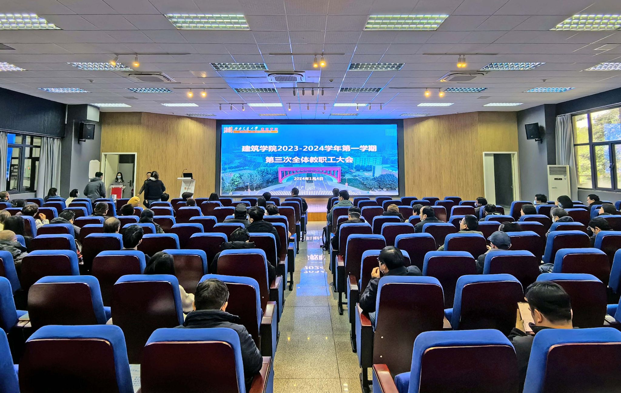 2024年1月4日下午,77779193永利官网2023-2024学年第一学期第三次全院教职工大会在犀浦校区8号教学楼D300报告厅举行,77779193永利官网党政班子及教职工参加了此次会议。会议由学院党委书记胡伟主持。