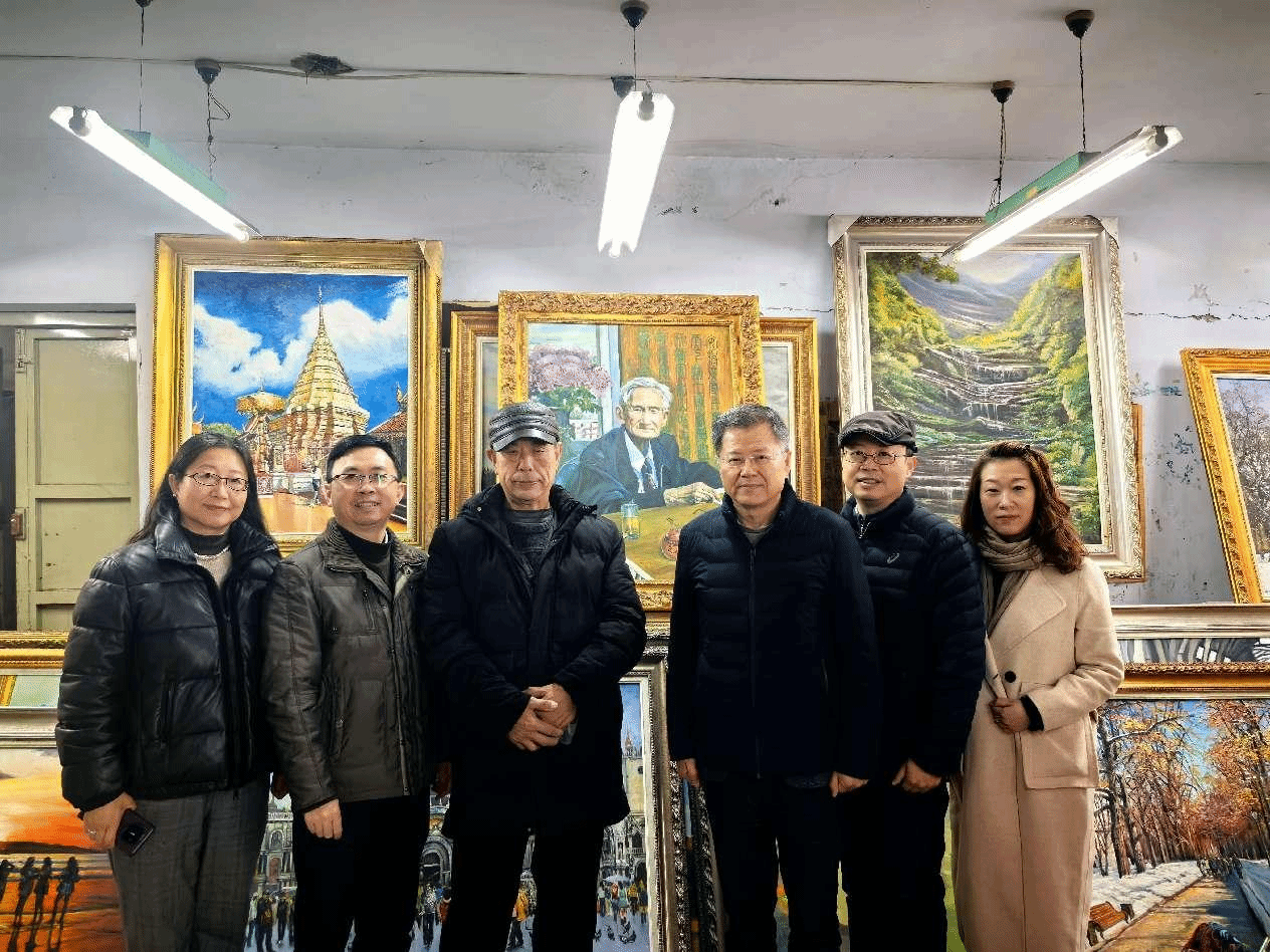 慰问组首先来到了退休教师郭绍波的工作间。虽然郭老已是耄耋之年,但绘画不辍、创作不止,在他的工作室让大家切身感受到了老先生对艺术的热爱与孜孜以求。慰问团队与郭老师进行了深入的交流,详细了解了他的生活状况和健康情况,并认真听取了他对学院发展的宝贵意见。