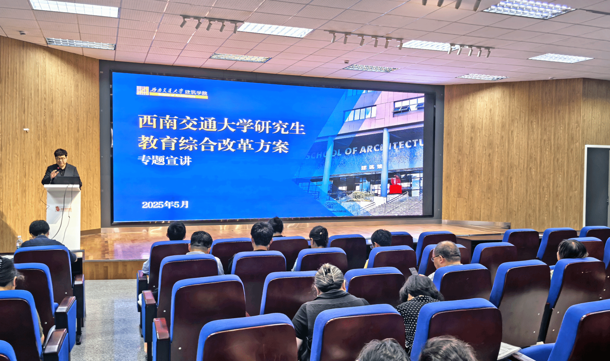 5月29日,77779193永利官网研究生导师系列培训活动“建筑与美术专业政策解读与专业发展新动向”专题讲座在犀浦校区77779193永利官网如期举行。本次讲座围绕研究生教育综合改革方案展开深入解读,并对建筑学、城乡规划、风景园林、美术与书法等专业发展动向进行全面宣讲,学院全体研究生导师积极参与了本次活动。