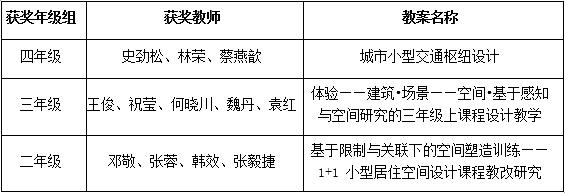 本次大会共有来自全国及台湾、香港地区以及日本、美国等共900多名专家和学者参会。送选参评56所学校提交127份教案,经评委评审共选出优秀教案45份,优秀作业88份。我院选送参评的 3 份教案及 6 份学生作业全部获奖,获奖率高达 100%,成为四所获奖率100%的学校之一,获奖总数名列全国第一。我院建筑学二、三、四年级的教案已在此项比赛中连续两年全部获奖。