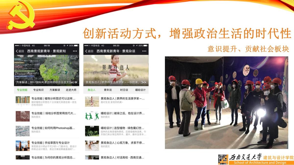 有力推广了景观文化和知识,展示了师生党员的风采,拓展了西南交通大学景观教育的社会影响