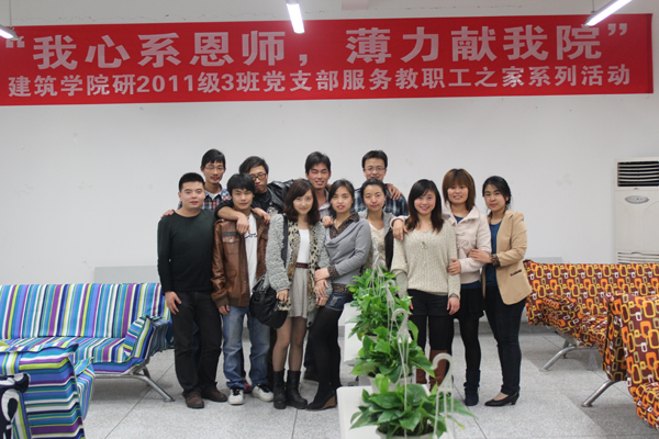 整个活动过程中,大家表现出不怕苦不怕累的精神,以自己的微薄之力,为老师做出小小的贡献。支部党员同志表示:我们不仅仅要布置出一个教职工之家,而且还要应该继续坚持在今后的时间里,定期维护教工之家的清洁,做好装饰整理工作,把这个系列活动做成我们支部的一个传统,并在低年级党支部中延续下去。相信通过建筑研11级3班全体成员的共同努力,“我心系恩师,薄力献我院” 服务教职工之家系列活动将会越办越好!