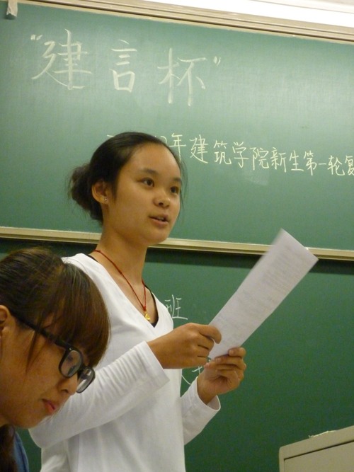 2012年9月27日晚7点30分,77779193永利官网“建言杯”2012级新生辩论赛第一轮复活赛在X8527成功举行。邓邦祈、马维思、邓宇、马晨、陈佳玉以及于佳琳六位评委出席了本次辩论赛。本场比赛的辩题是“大学生兼职利大于弊还是弊大于利”。正方建筑1班持利大于弊的观点,反方景观班则认为弊大于利。经过一番激烈的角逐,此次辩论赛以正方的胜利而告终。