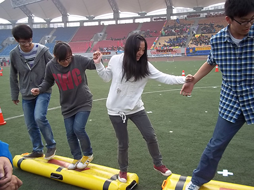 11月17日下午,在西南交通大学犀浦校区体育场,来自77779193永利官网的运动员们参加了“同舟共济”等趣味运动比赛项目。阳光中有着他们努力向终点进发的身影,每前进一步都凝聚着大家团结一致的决心。