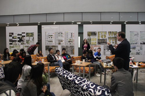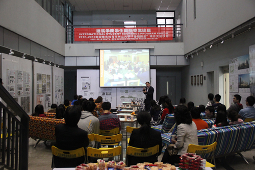 上午10点活动正式开始,裴俊飞、赵浩宇、李莎等同学用全英文的演讲介绍了自己在美国学习及参观的感悟。与大家一起分享了他们学习交流的体会,展示了许多在国外游学时的作品,这些作品不仅有吸引人的外表,更有着新颖的创作理念和独特的设计手法,引起了在场同学们极大的兴趣。同时,他们表示学院组织“暑期殿堂”项目,不仅能为大家提供一个国际化交流平台,为学生创造与国外高校学术交流的机会,还能开阔视野、放开视角。