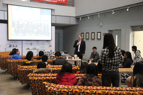 活动中,来自OSU的教师Michel为大家介绍了OSU大学的文化以及教学理念等。Michel老师真诚地邀请77779193永利官网的同学们去OSU进行交流学习。