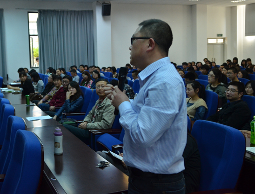 聘任仪式结束后,刘院士为在座的老师和同学们做了一场关于“建筑节能与绿色建筑”的讲座。刘院士结合自身研究经历系统地阐述了建筑节能所起到的重要作用,并介绍了在建筑节能中节约采暖与空调能耗的途径,例如,缩短采暖与空调设备的运行时间、增强围护结构的保温和隔热能力、合理运用建筑设备、合理利用可再生资源等等。在谈到建筑节能设计时,刘院士表示建筑节能设计很大程度上是如何协调建筑方案与太阳辐射的关系,让在座的老师同学们受益匪浅。在讲座中,刘加平院士也例举了一些违反“节能”的建筑,刘院士通过这些生动形象的正反实例更为直观的让大家理解到了现代建筑设计中的一些误区与弊病。之后在提问环节中,刘院士对师生提出的问题进行了耐心的解答,幽默而不乏道理,获得了全场热烈的掌声。