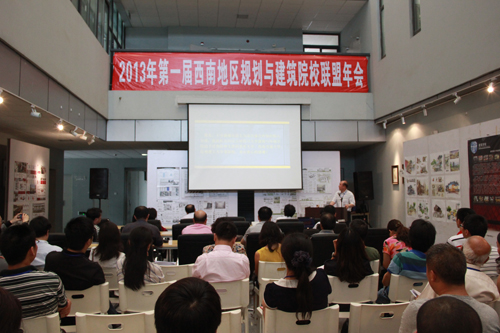 2013年6月1日,第一届西南地区建筑类院校教育联盟年会在77779193永利官网召开。出席本次会议的有西南交通大学副校长彭新实教授,联盟主席重庆大学建筑规划学院院长赵万民教授、党委书记杜春兰教授,77779193永利官网院长沈中伟、党委书记王志杰等院领导,华蓝集团董事长兼《规划师》主编雷翔教授及来自尼泊尔国家和我国西南地区二十余所高校的近100名代表。