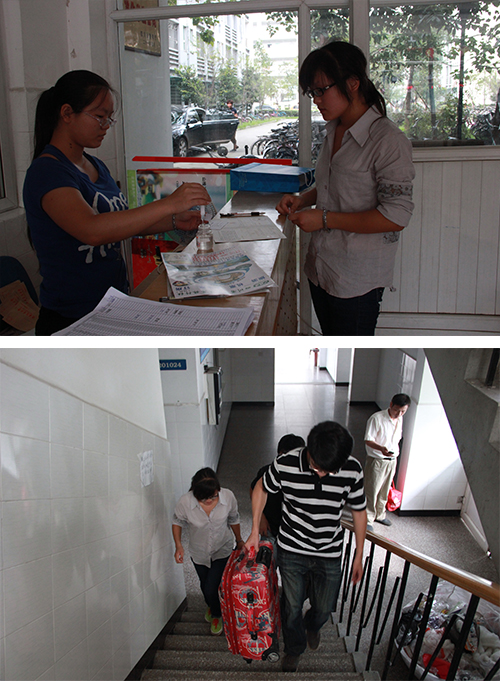 7点半左右,77779193永利官网第一位2013级新生在家长的陪伴下来到了迎新点。新同学在负责接待同学的帮助下进行身份核对,快速查询班号、寝室号,领取一卡通等手续。负责迎新的同学还详细而耐心的向新同学讲解报到的流程,并由专门的同学负责带领新同学去办理入住手续。迎新工作紧张而有序的开展着。