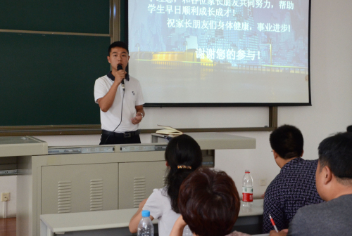 新生家长会由院党委栗民副书记主持。栗民副书记首先对各位家长的到来表示热烈欢迎,随后简要的介绍了学院学生工作概况及领域分工等情况。