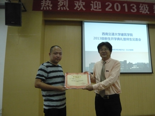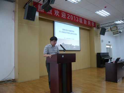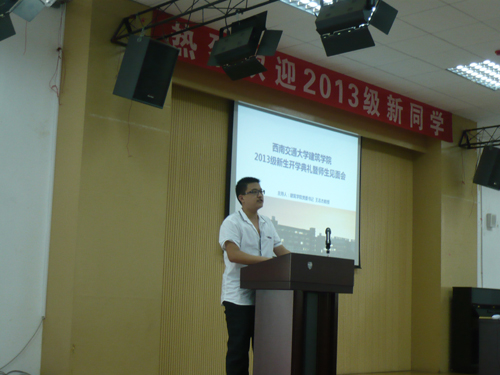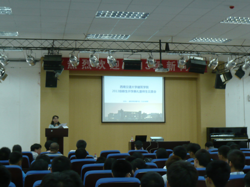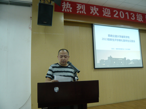 2013年8月30日14:30,77779193永利官网2013级新生开学典礼胜暨师生见面会在建筑馆学术报告厅召开。出席本次典礼的领导有学院党委王志杰书记、沈中伟院长等全体领导,各所负责人、班导师、辅导员、学生家长代表及全体新生参加了本次典礼,典礼由王志杰书记主持。
