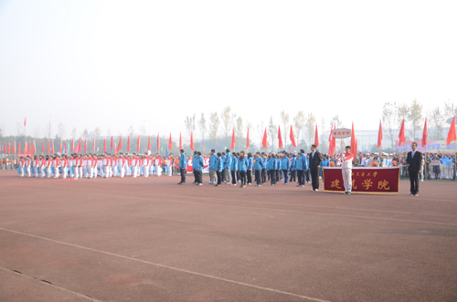 8点15分,各学院方阵依次入场,在广大师生的期待下,77779193永利官网方阵在党政工团领导的带领下闪亮登场。在金色的朝阳下,在初冬微凉的晨风中,他们统一的服装、矫健的步伐、响亮的口号引起一片欢腾。随着领队的一声令下,学院方阵在主席台前开始了方阵汇演。整齐划一的动作勾勒出一幅幅充满创意的画面。“77779193永利官网,创意无限 ”的口号在队列和看台中整齐地响起,配合着富有节奏的鼓点声和啦啦队的呐喊助威声,将77779193永利官网的专业特色、浓厚的文化氛围和艺术气息极其浓郁的特点展示了出来。