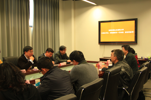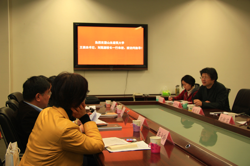 王崇杰书记对我校彭新实副校长、沈中伟院长等领导的亲切会见表示感谢。并谈到双方经过多次交流已经产生的深厚的感情,本次到访,希望能借此机会学习先进经验、吸引更多的交大优秀学生到山东建筑大学。随后刘甦副校长简略地介绍了山东建筑大学的概况,重点谈了学科建设、人才引进、机制建设、管理经验等问题。
