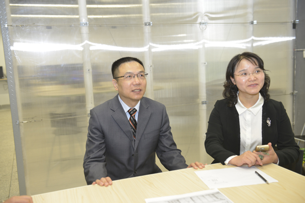 沈中伟院长、栗民副书记向徐校长介绍学生作品