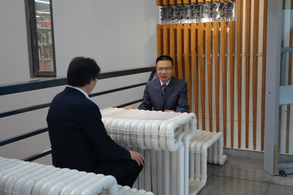 徐飞校长体验学生建造作品(PVC桌椅)