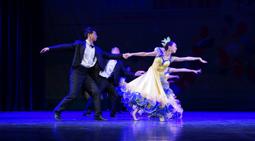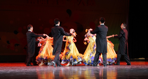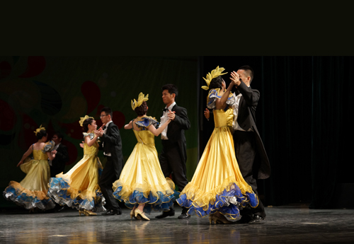 训练初期,因为学校安排的课程十分有限,同学们对一些基本动作仍然领悟不到位,对比赛所规定的圆舞曲节奏的把握也是力不从心,但是凭借团队强烈的荣誉感和自信心,逐渐从观看、模仿教学视频当中找到了突破口。为避免舞蹈动作出现错误,同学们便相互监督,互相纠正。通过各班文艺委员以及参赛队中几位舞蹈爱好者的牵头,大家集思广益最终确定了参赛的华尔兹曲目,并配合着舞蹈音乐,来确定出最终组成舞蹈的分解动作,按照舞曲基本节奏旋转打圈,动作轻快、优美,情绪热烈、欢快。华尔兹舞步具有明显的升降动作,加上轻柔灵巧的倾斜、摆荡、反身和旋转动作以及各种优美的造型,使其具有既庄重典雅、舒展大方、又华丽多姿。