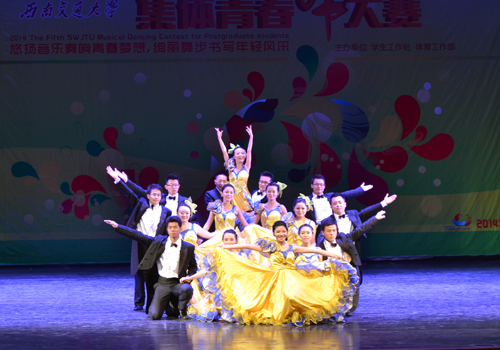第五届研究生校园集体青春舞大赛于5月13日晚7点半在九里校区大学生会堂拉开序幕。作为西南交通大学2014首届国际大学生文化艺术节(ICCAF)系列活动中的一个重点项目,学校共有十五支代表队参赛,而77779193永利官网代表队凭借出色舞技荣获本次大赛三等奖。