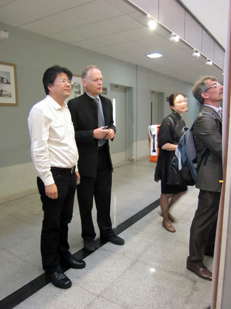 本次交流活动,德国安哈尔特大学德绍77779193永利官网派出四位成员。他们是:Rudolf Lueckmann教授,安哈尔特大学历史遗产保护硕士专业负责人,德国萨克森安哈特州历史遗产保护委员会副主席;Robert Off 教授,安哈尔特大学膜结构设计硕士专业负责人,膜壳结构技术研究所负责人;Yili Lu 女士, 安哈尔特大学国际学生科研交流项目副校长助理;赵宇工程师,Off教授的学生,德国Archineer M.ST(膜结构认证设计师),华诚博远北京设计四部(钢结构设计部)总工程师。