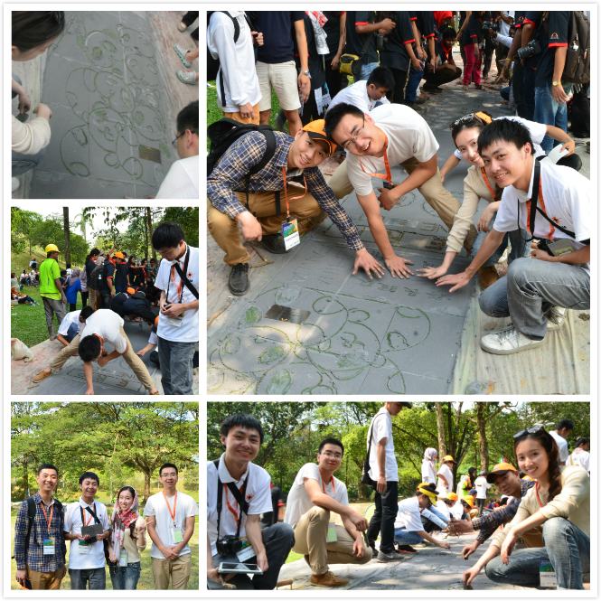 联谊会正式开幕式于25日早上在国际伊斯兰大学报告厅举行,开幕式上,来自马来西亚的建筑师Martin与来自法国的建筑师 Razin 分别以自己的设计经验和成果为大家分享了“可持续”与“和谐共生”理念如何在建筑设计当中实现,会后,两位建筑师与我院师生代表合影留念。开幕式后,承办方还为大家安排了一场关于“壁画”的讲座,要求同学们在26日,以铺地的形式,用“阴刻”的方法,在未干的水泥路面上独立完成一幅画,可绘制代表自己国家文化的图案。25日下午,在国际伊斯兰大学77779193永利官网外,不同国家的同学品尝了马来西亚的特色美食,也参观了77779193永利官网一层的展览空间。通过对展板作业的评析和介绍,各国同学分享了自己的看法。我院师生还以中国西南部传统建筑图示为例,为各国师生介绍了中国西部文化的特色,让大家更好的了解四川,了解成都,了解我院。25日晚,我院与来自香港大学同学、马来西亚东姑阿都拉曼大学(UTAR)华人同学一起,代表中国建筑师协会,参加了文艺演出,以一首中国风的曲目《青花瓷》获得阵阵掌声。观众们情绪高涨,尽管语言是最大障碍,不过在场观众还是跟着曲子与我院师生一起合唱。