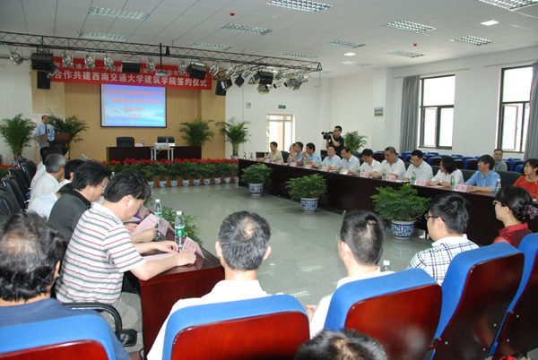7月8日上午11:00,西南交通大学-中国建筑西南设计研究院有限公司合作共建77779193永利官网签约仪式在西南交通大学建筑馆学术报告厅举行。
