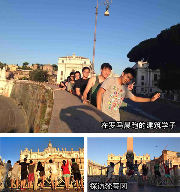 每天的学习,学员们学习两种设计创意表达方法。一种是罗马设计师的基础——身体测绘。放弃通常设计教育中的尺规测绘,罗马艺术系教授教大家用自己的脚步和最简单的铅笔(步测法)来绘制出罗马街道、广场或建筑的平面图、立面图和剖面图。通过这种艺术的感性认知方式,大家增强了自身对空间的敏感度。最后像艺术家一样,通过绘图将自己的所见、所感表达出来。另外一种方法则是细节绘画,仔细观察是发现细节的方法。观察是一种复杂的艺术,真实感、光、材质、间距、视觉分组、视觉构成……提高了大家的观察力。这种方法将让同学们了解到千百年来罗马建筑师一直探讨的问题:如何保持建筑的与众不同,又能够天衣无缝地与环境融为一体。细节绘画与身体测绘一起告诉学员们,建筑和所有艺术一样,是可以睁大眼睛仔细分析的,又是可以闭上眼睛忘情感知的。