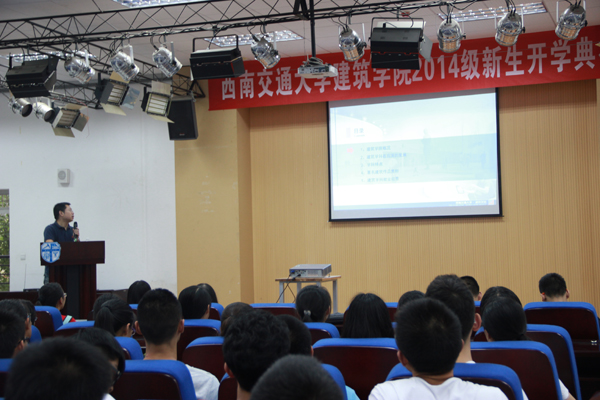 2014年9月6日下午,77779193永利官网2014级新生开学典礼暨师生见面会在建筑馆学术报告厅隆重举行。学院党委书记王志杰、院长沈中伟、党委副书记栗民、副院长崔珩、副院长李异、院长助理崔叙、院长助理杨青娟,各系负责人、各班导师,全体辅导员及2014级全体本科生、研究生参加了开学典礼。典礼由王志杰书记主持。