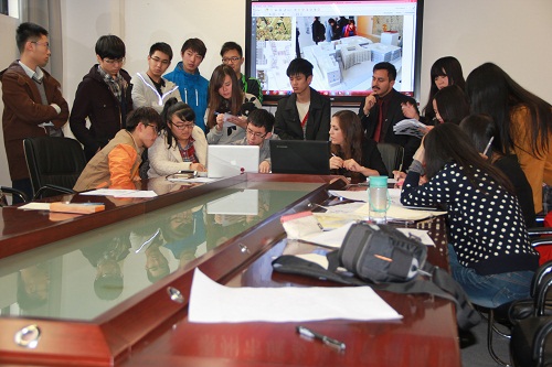 在意大利罗马建筑学会设计师Leopoldo Russo Ceccotti、Laura Colazza来访77779193永利官网期间,Leopoldo Russo Ceccotti和Laura Colazza还对暑期参加意大利项目的学生的设计作品进行指导,同学之间相互交流,同时将会把优秀作品推选到国际大学生设计作品大赛中。