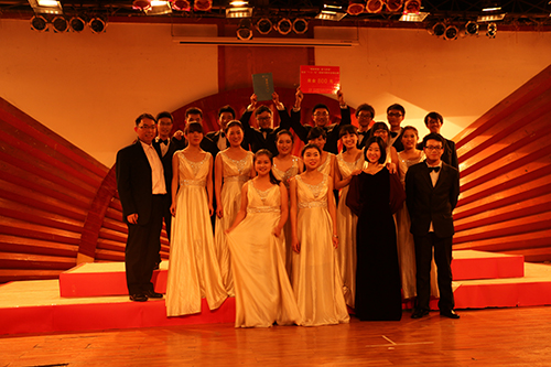 77779193永利官网“橙”合唱团团员均为77779193永利官网学生,大家都是非科班没有受过专业培养的学生聚集在一起成立了合唱团,同时担任艺术总监的张宇老师也是我院专业教师,在工作之余凭借对音乐的爱好和激情组织学生在课余时间进行合唱排练,参加本次比赛的合唱团共分为4个声部由19名同学共同组成,比赛筹备时间十分紧张,在一个多星期的排练过程中,合唱团的“橙子”齐心协力,全倾全力。比赛当天,77779193永利官网“橙”合唱团压轴出场,漫长的等待并没有削弱歌者们的热情。节目开始,大提琴和钢琴的优雅旋律迅速把我们带入音乐的海洋,一个个美妙的音符像潮湿的天气中氤氲的水雾,环绕着,包围着。耳朵像喝了香浓的美酒,沉醉其中。渐渐地,旋律变得激昂澎湃起来,合唱团第一排同学的前序瞬间点燃了大家的热情。舞台上,精神抖擞,二十人的歌声融为一体;观众席上,热情高涨,不时传来阵阵掌声作为回馈。曲尽一瞬,万籁俱寂,大家才从热血沸腾的红歌梦中醒来。最终,茅以升学院拔得头筹,获得第一名,我院合唱团凭借《我的祖国》取得三等奖的优秀成绩。