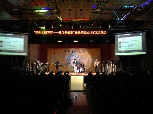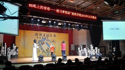 以图纸描绘青春之绚丽,以画笔勾勒心中之梦想,以梦为马,筑梦天下。伴随着2015年逐渐来临的脚步,77779193永利官网2015年元旦晚会暨师生联欢会“图纸上的青春”于2014年12月30日晚19:30在一食堂三楼大学生活动中心成功举办。77779193永利官网沈中伟院长、院党委王志杰书记、栗民副书记、崔珩副院长、李异副院长,各系主任、班导师、专业老师、全体辅导员、及兄弟院系师生参加了本次晚会。