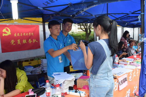 2015年8月24日,早上五点,天光微蒙,虹桥的灯光都还未熄灭,建筑与设计学院的迎新工作就紧锣密鼓有条不紊地开始了。早上六点,迎新志愿者已经布置好迎新场地,早上7点左右学院迎来第一位新同学,学院迎新工作正式开始。