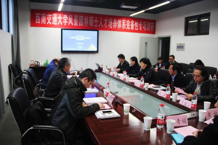 12月21日上午9时,专项调研汇报会在建筑与设计学院召开。全体调研专家,西南交通大学副校长冯晓云,研究生院副院长刘学毅,建筑与设计学院院长沈中伟,党委副书记栗民,副院长崔珩、李异、支锦亦,院长助理杨青娟、崔叙,风景园林系负责人和教师代表出席会议。