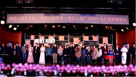 为迎接2015级新生暨迎2016年新年的到来,展现我院莘莘学子风采,12月24日晚7点,由建筑与设计学院主办、建筑与设计学院学生会承办的“图纸上的青春·新匠心造 ”2016年元旦暨迎新晚会在二食堂三楼隆重举行。学院院长沈中伟,党委副书记栗民,携全体党政领导及全院教职工参加晚会,各兄弟学院老师、学生会主席也受邀出席了本次晚会,学生热情高涨,全场座无虚席。