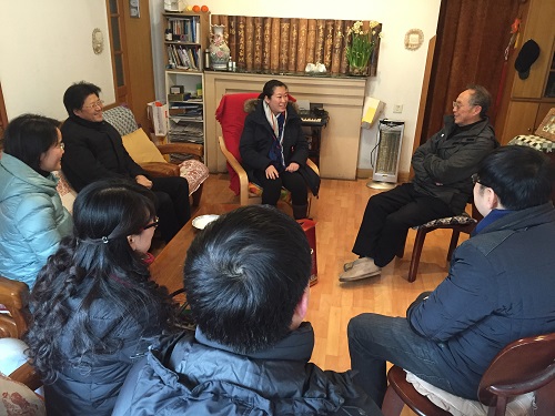 1月25日下午,学院领导班子先后来到退休老教师陈大乾、钱宜菊的家中,与两位老教师进行了交流。沈中伟院长亲切询问了他们的身体健康状况和日常生活,向老教师简要介绍了学院的发展和取得的成就。沈院长谈到:学院的发展离不开各位老教师的努力,感谢各位老师对学院工作的大力支持,目前学院正值发展改革的关键时期,希望老教师继续关心学院发展,为学院发展出谋划策。栗民副书记谈到:各位老教师虽已退休,但是在学院的青年教师培养、校友工作、教学及科研工作中仍然给予学院大力的支持和帮助,感谢各位老教师对学院做出的贡献。
