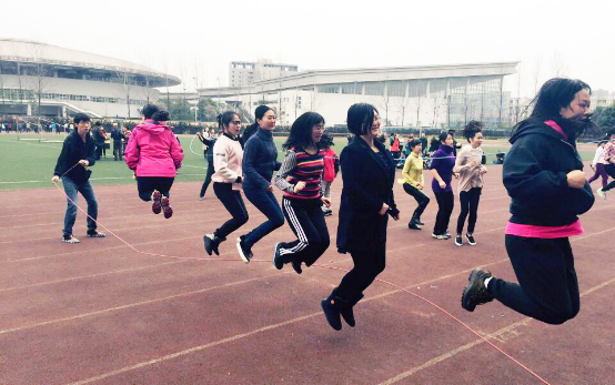 春暖花开的阳春三月,为提高全民健身意识和团队的凝聚力、战斗力,迎接第106个“三八”国际劳动妇女节,同时为了迎接120周年校庆。学校于3月8日下午2点,在犀浦校区北区体育场举行迎“绳采飞扬迎校庆”“三八”女职工跳大绳比赛,我院工会积极响应学校号召,在院工会部门主席栗民的带领下,学院工会各委员及来自不同专业不同年龄等16名女教工组成的代表队参加本次活动。