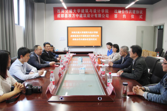 讲话后,双方签署了《西南交通大学建筑与设计学院与成都基准方中建筑设计有限公司战略共建协议》、《成都基准方中建筑有限公司与西南交通大学建筑与设计学院合作基金使用协议》。协议规定,成都基准方中建筑有限公司每年将向建筑与设计学院捐赠30万元合作基金。