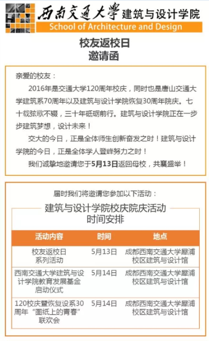 上一篇: 【120校庆献礼】2016国际大学生文化艺术节“基准方中”杯西南交通大学建筑与设计学院第三届建造节圆满落幕