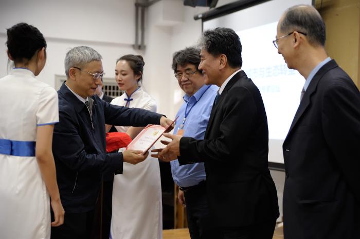 在客座教授聘任仪式上,张兵为李鸿源、姚昭智、李孟颖、张全、刘海龙等受聘教授颁发证书。