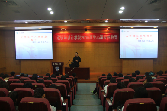 大学生心理健康教育工作是学校教育工作必不可少的组成部分。西南交通大学建筑与设计学院依据学院的人才培养目标,以学生为中心,积极推进学校大学生心理健康教育工作的开展。9月20日晚7点,建筑与设计学院在犀浦校区校图书馆1号报告厅举办了以“阳光心态 幸福人生”为主题的新生心理专题教育讲座。