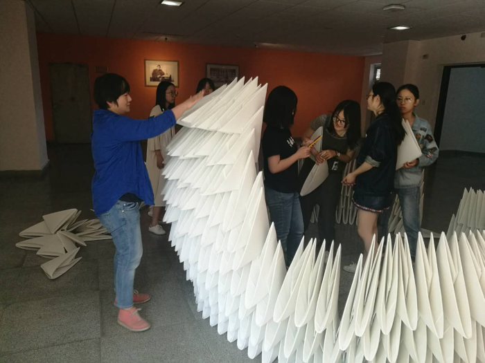 同时,为加强海峡两岸教学交流,学院与台北科技大学进行联合教学实践——“可持续的建造”。台北科技大学师生与我院师生共同合作完成两组作品的搭建。