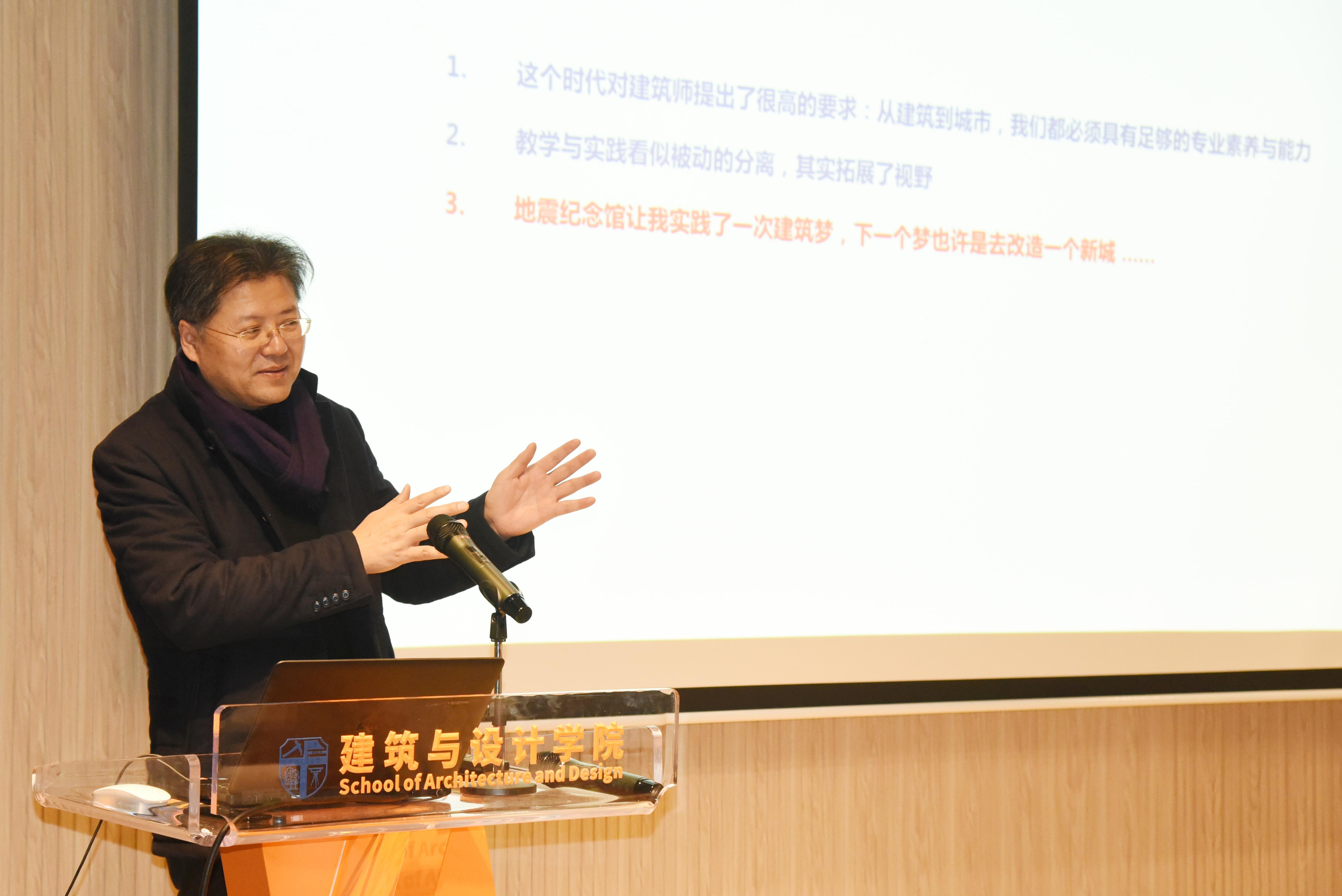 最后,沈书记表示,建筑学的教学和实践都是紧密结合的,空间、绿色、可持续发展、责任感等都能够在两个方面体现。同时,他讲道,“一次好的讲座将带来好的启迪与启发”,对于本科学生而言,甚至终生难忘、终生受用。最后,沈书记感谢了蔡教授给老师和同学们带来了新的启迪。