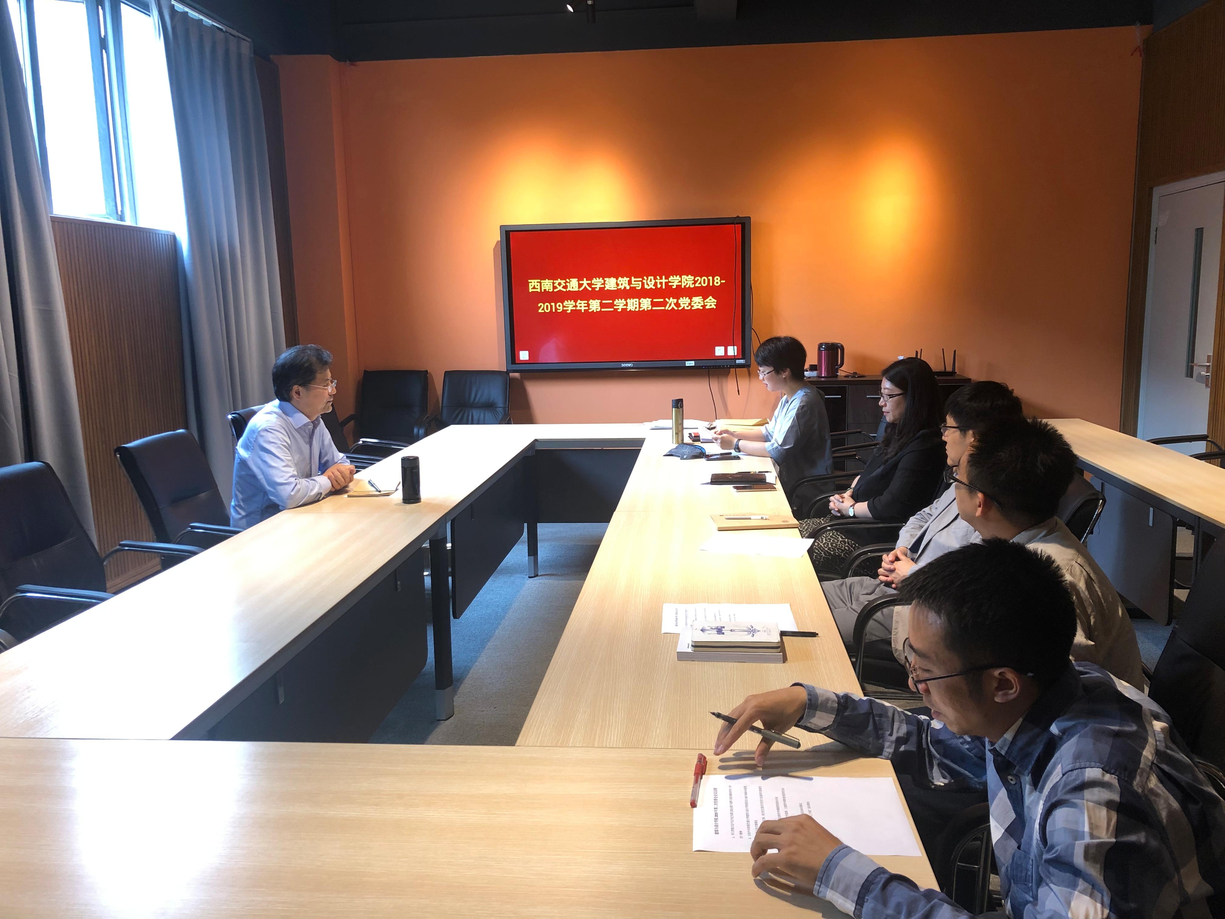 随后,会上就《中共西南交通大学建筑与设计学院委员会2017-2019年创先争优表彰工作方案》进行了讨论,明确了评选程序以及院级表彰名额。会上就学院团委拟于2019年5月召开共青团西南交通大学建筑与设计学院第一次代表大会、共青团西南交通大学建筑与设计学院第一次学生代表大会申请报告进行审议,同意按期召开。会上就即将开展的2019年“三分类三升级”活动、2019年全体教职工党员应知应会知识测试进行工作布置和要求。会上讨论通过学生支部换届请示报告以及学生支部拆分、重置等相关事宜。