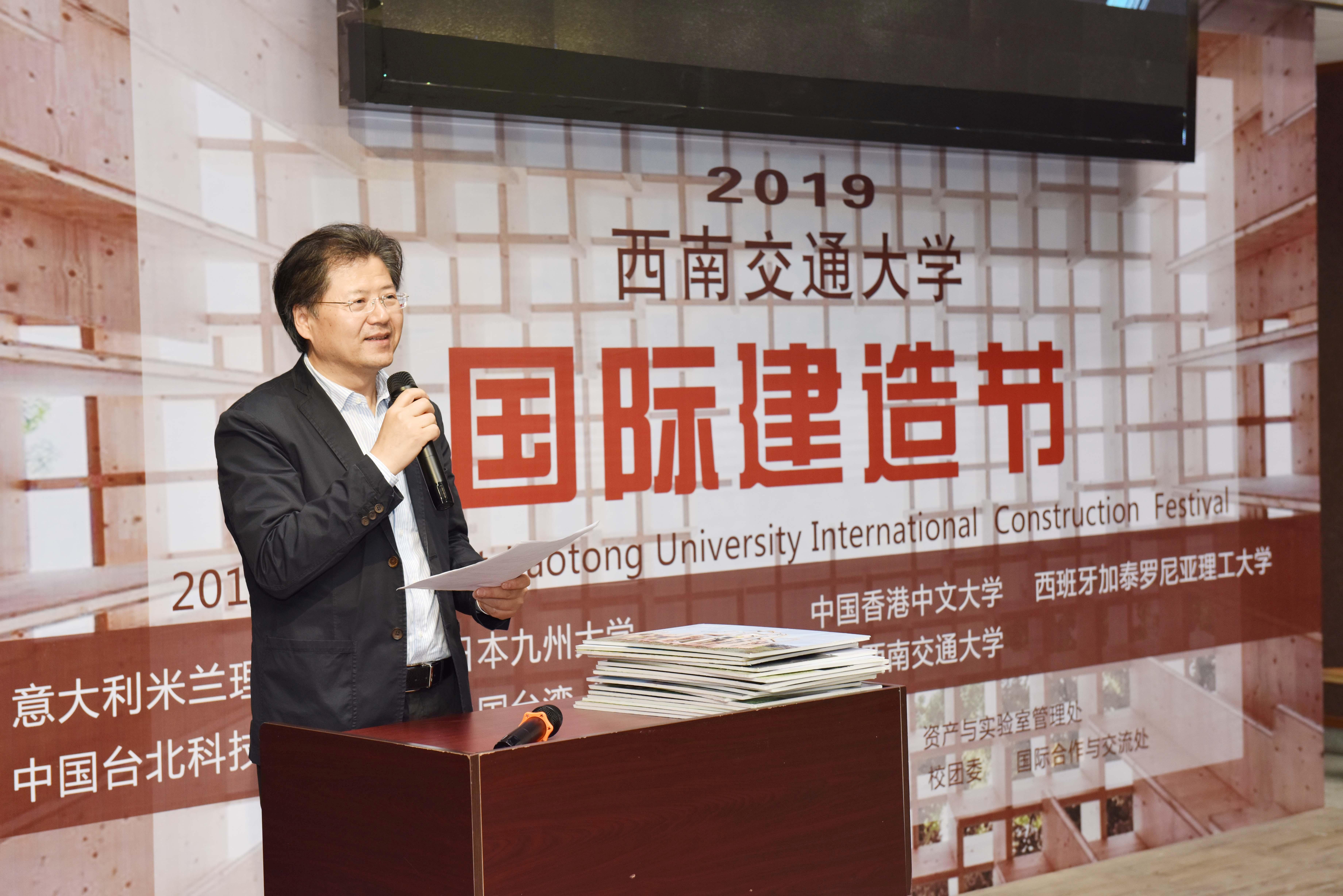 西南交通大学副校长冯晓云教授也进行了致辞。她表示,经过不断探索发展,“建造节”成为本校推动专业人才培养改革,发展通识教育和校园美育工作的重要活动之一,为我校人才培养工作做出新的贡献,显示了其作为跨学科创新教育的巨大潜力。“建造节”的开展振奋了学生积极向上的探索精神,促进了学科之间的多元交叉,增强了校园活力和凝聚力,引起了良好的社会反响。接下来,来自西南交通大学建筑与设计学院院长ODGAARD教授对此次活动也给予高度肯定。最后,日本九州大学赵世晨教授代表国际师生发表了热情洋溢的致辞,并对本次建造节寄予了极大的热情和良好的祝愿。